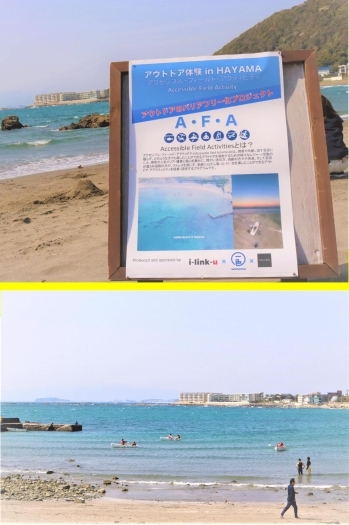4月1日葉山町一色海岸で開催されたA・F・A(アクセンシブル・フィールド・アクティビティ)とは『障害や年齢、話す言語に限らずどのような方にも楽しめるレジャー活動』というコンセプトを基にスタートした活動です。今回はデモンストレーションとして、ハンデキャップのある方がストレスなく楽しめるアウトドアのプログラムを試験的にお披露目しました。